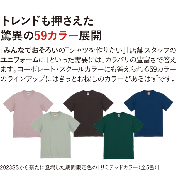 「よれない」「透けない」「長持ちする」――オリジナルTシャツ選びで重要な3つの要素をすべて満たす、United Athle(ユナイテッドアスレ)の5.6オンス ハイクオリティーTシャツ【5001-01】。その品質の高さと豊富なバリエーションで、多くのお客様に選ばれ続けています。