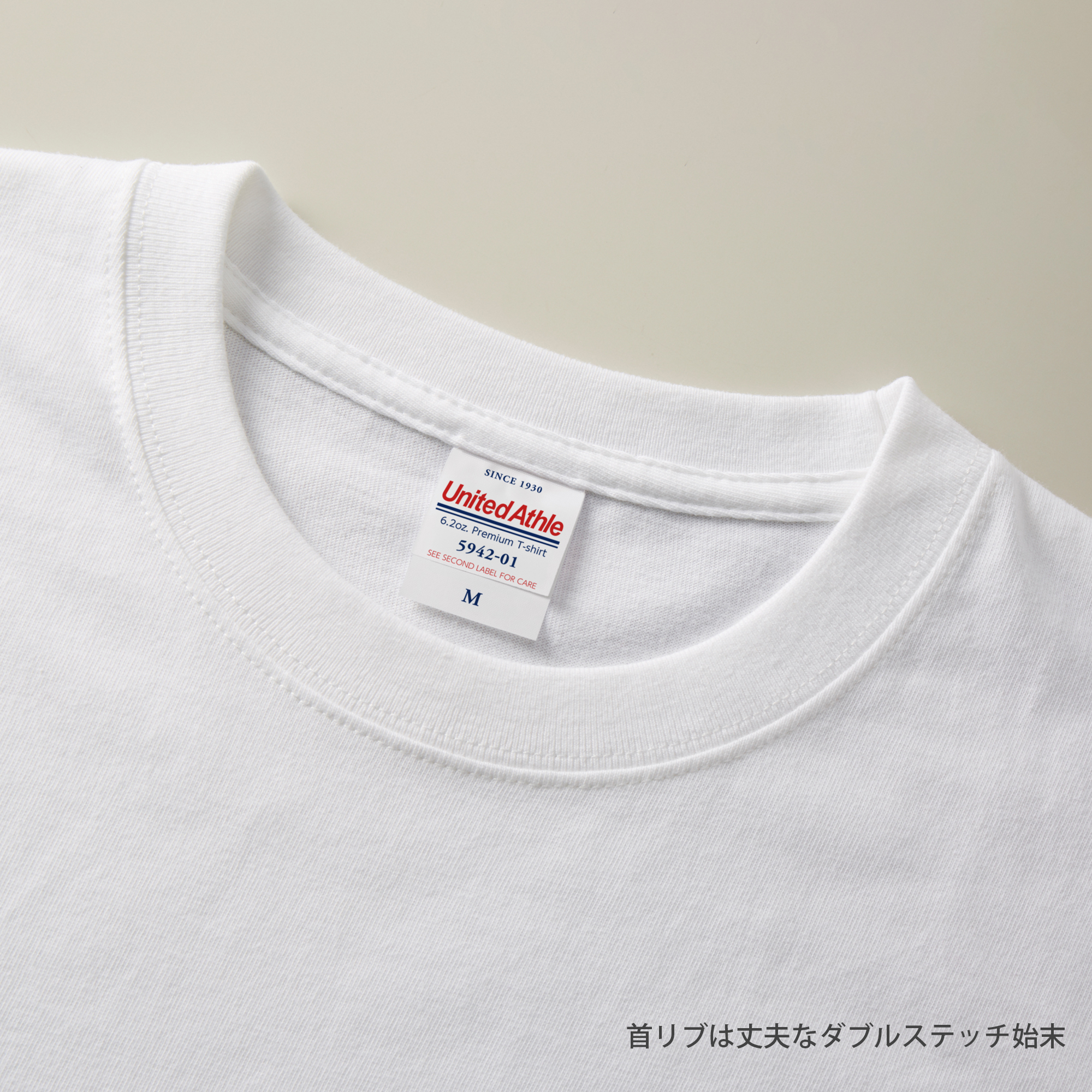【United Athle】の6.2オンスプレミアムTシャツは、「肌触り」「首回り」「防縮性」に優れた究極のロングセラー無地Tシャツです。コーマ糸使用で滑らかな風合いを実現し、防縮加工により長期間の使用でも型崩れが少ないです。