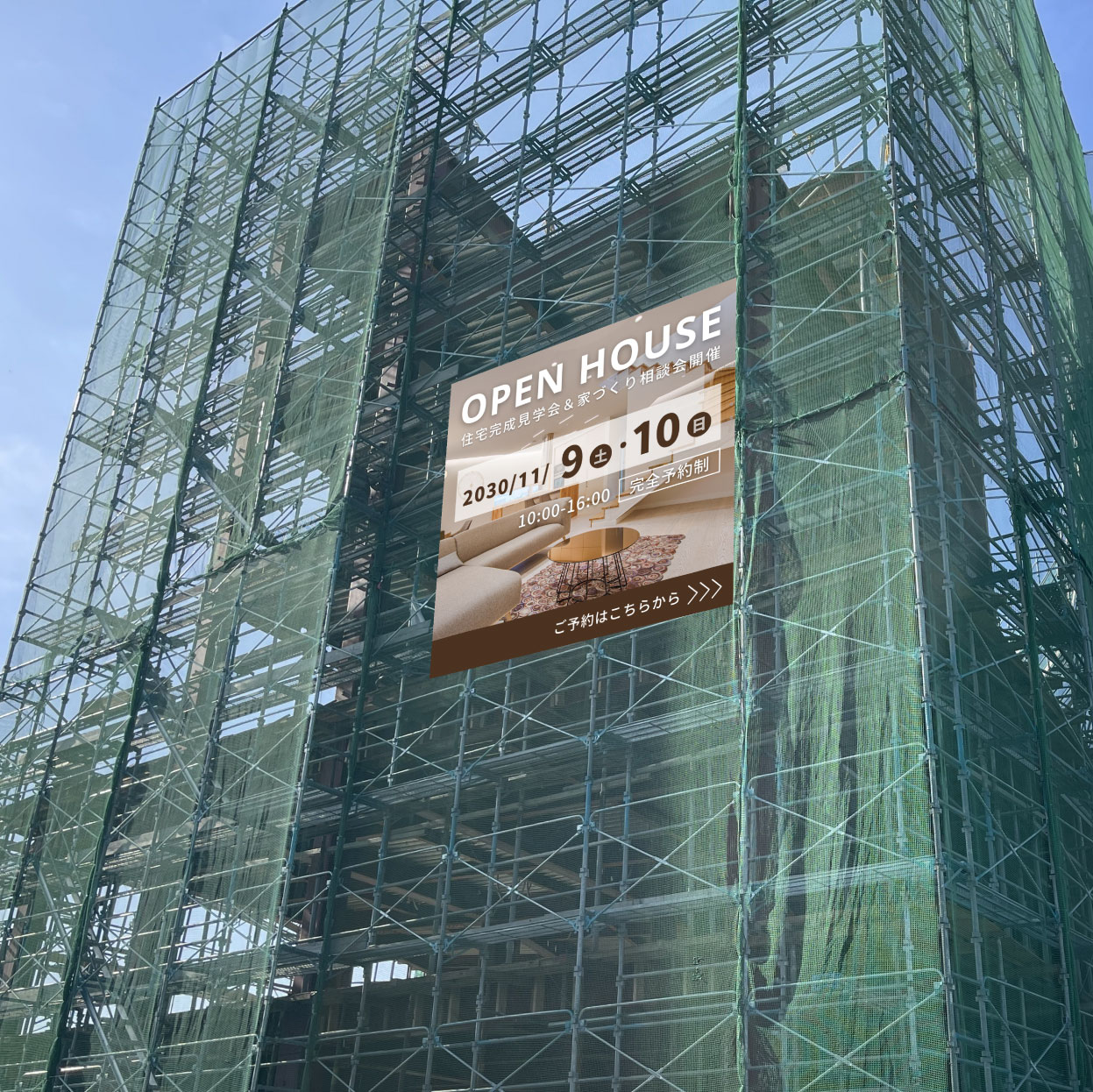 屋外用広告幕:店舗の広告や駐車場の利用案内など、さまざまなシーンで活用可能。