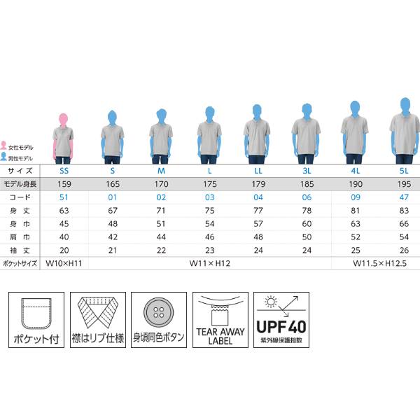 いつでも使えて、誰でも似合う。ポロシャツの王道「鹿の子」素材のベーシックタイプ。ポリエステル×綿の交編で肌触り・吸湿性に優れ、形状安定で型崩れしにくいのが特長です。5Lまでの豊富なサイズ展開で、みんなで揃えるオリジナルポロシャツ制作に最適です。