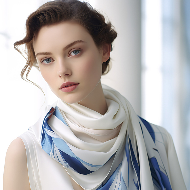 弊社のスカーフには、さまざまな生地から選べる幅広い選択肢があります。【シルクサテン】【シルクシフォン】【シルク&綿の混合】【ポリエステル】【コットン】など、お好みに合わせて選べるので、お客様のニーズに合ったスカーフを提供します。