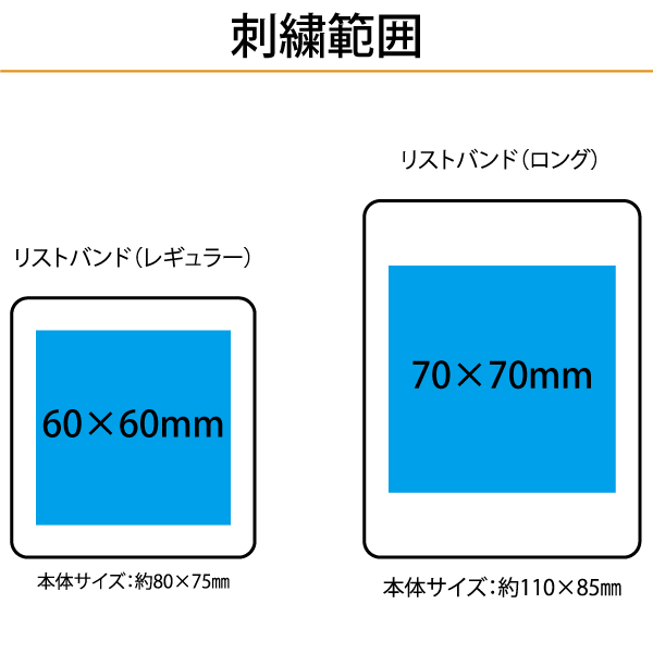 ●刺繍サイズ 最大:約W6x6cm (レギュラー) / 約W7x7cm (ロング)