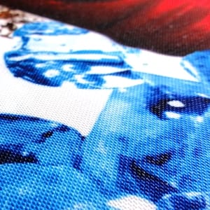 耐久性:透け感はなく室内にも使える生地です。柔らかく小さく畳めるので持ち運びされる際には最適な素材です。プリントの発色が良くキレイに仕上がります。広告幕やタペストリー・バナー等によく使用される生地です。遮光スエードもございます。