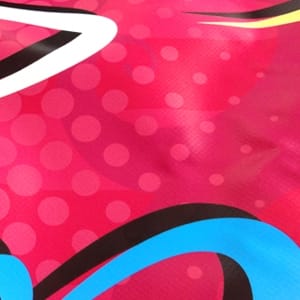 耐久性:透け感はなく室内・屋外どちらにも使える生地です。印刷の視認性に優れていて軽く丈夫な生地です。大型の広告幕にも適しています。