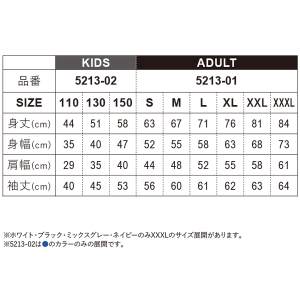110cmからの豊富なサイズ展開で親子・チームおそろいに