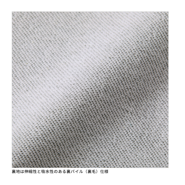 裏パイル生地で汗をかいてもベタつきにくい快適な着心地