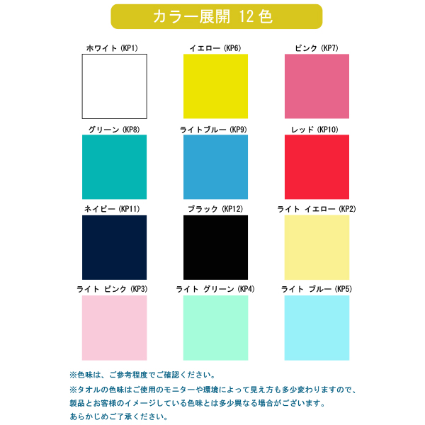 ※タオルの色味はご使用のモニターや環境によって見え方も多少変わりますので、製品とお客様のイメージしている色味とは多少異なる場合がございます。あらかじめご了承ください。
