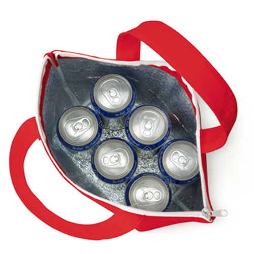 夏場の販促にうれしい保冷トートバッグ。軽くて持ち運びやすいのに、缶ジュース6本が入る容量で使い勝手抜群。単色・フルカラー印刷(シルクプリント/DTF転写)に対応し、企業ノベルティや野外イベントで選ばれています。