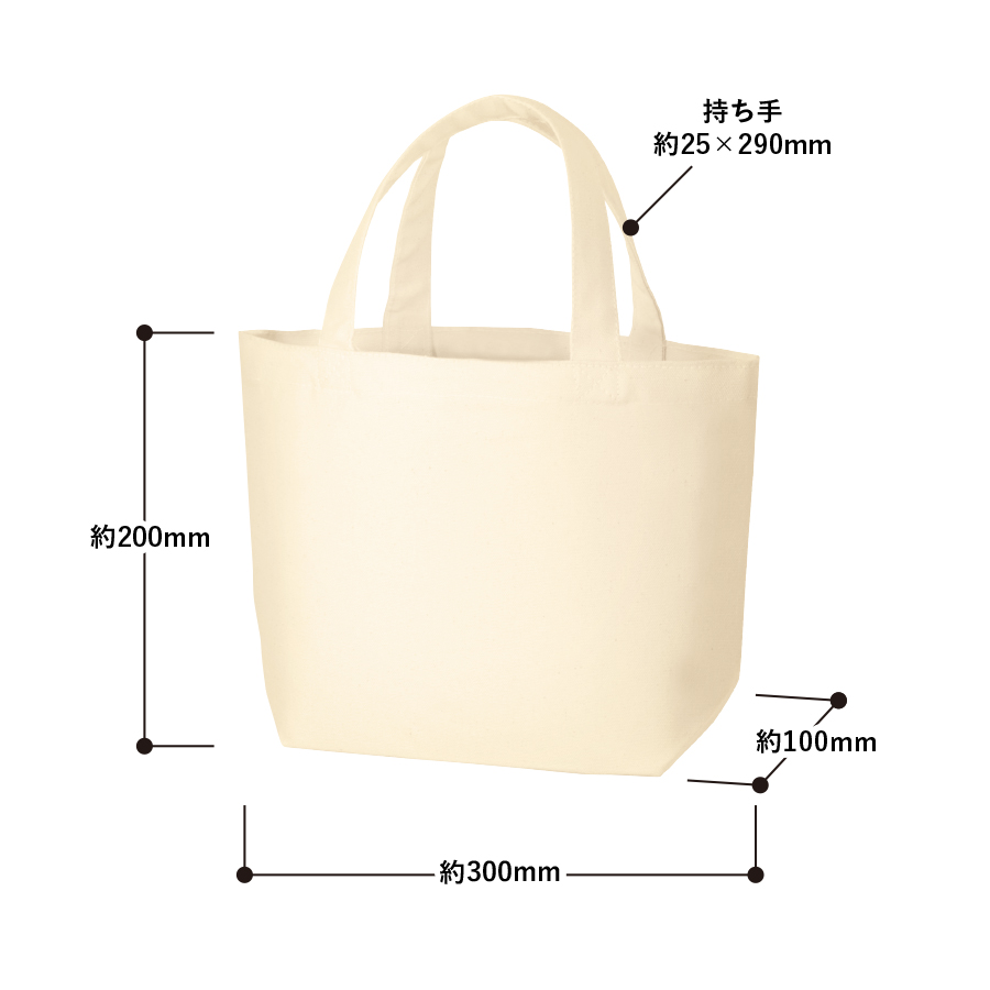 オーガニックコットンを使用した、地球にやさしいキャンバストート。Sサイズは「ちょっとしたおでかけ」にぴったりのサイズ感で、レジャー施設のオリジナル商品や住宅展示場の来場記念品、飲食店の物販・テイクアウトにもおすすめです。