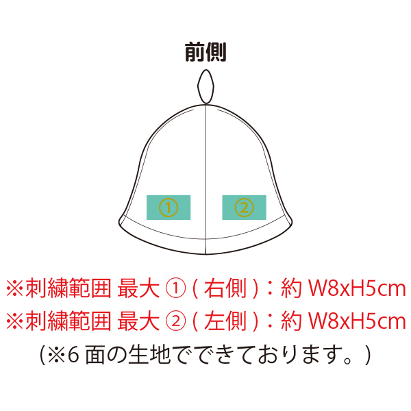 ※6面のタオル生地で出来ておりますので、サウナハット本体のつなぎ目部分に刺繍は不可です。つなぎ目部分にデザインが、被らないようにお願いいたします。