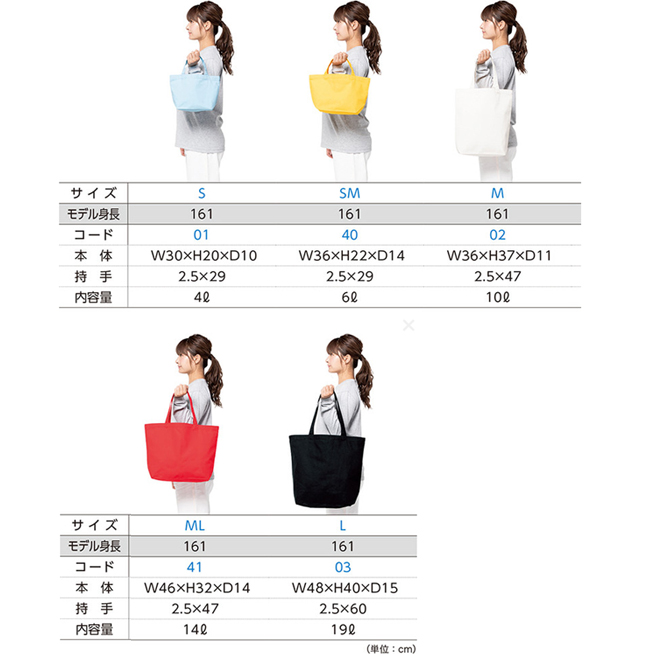 肉厚なキャンバス生地に、15カラー×5サイズ展開。