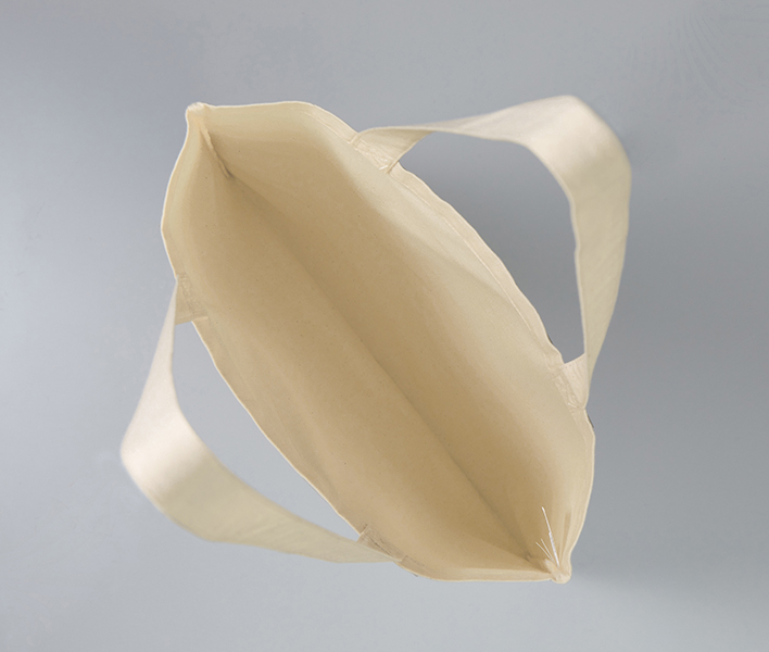 生地には、ざっくりとした風合いが魅力の薄手の平織生地を採用。新品の状態でも程よい「こなれ感」があり、サブバッグとしてはもちろん、メインバッグとしてもコーディネートをおしゃれに引き立ててくれます。しなやかな素材なので、使わない時は小さくたたんでバッグの中に忍ばせておけば、いざという時のエコバッグとしても活躍します。