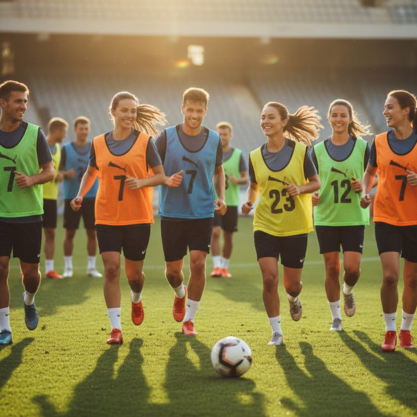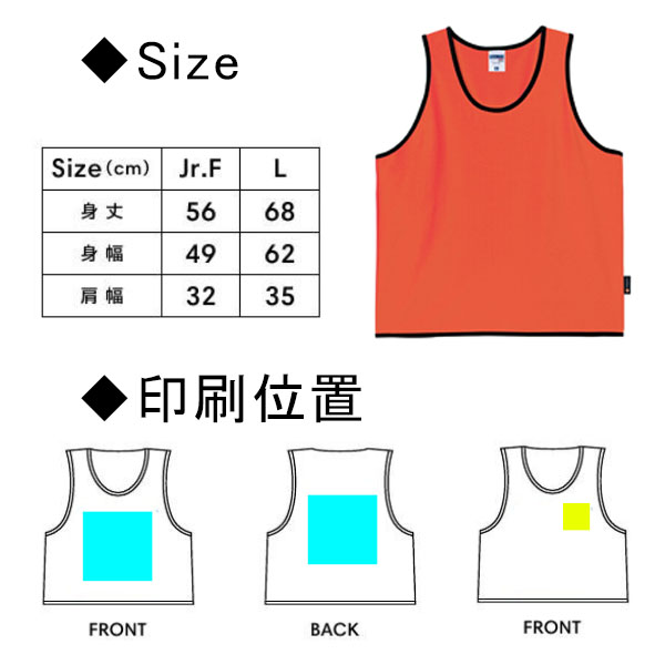 その一枚が、チームを一つにする。最高のパフォーマンスは、最高のチームワークから。 スポーツビブスは、激しい動きを妨げない軽量・高通気性メッシュ素材を採用。汗をかいてもベタつかず、快適な着心地をキープします。 豊富なカラーバリエーションと、剥がれにくい高精細プリントで、チームのアイデンティティを鮮やかに彩ります。練習から試合まで、共に戦うパートナーとして。