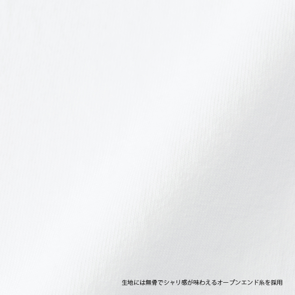 オープンエンド糸を採用しているため、リング糸よりも吸湿性に優れているだけでなく、ボリューム感のある質感と特有のシャリ感が味わえます。着れば着るほど味が出て、Made in U.S.A.のTシャツが持つ無骨な雰囲気に限りなく近い演出をしてくれます。