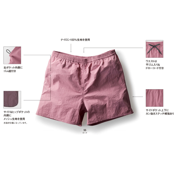 撥水性に優れた高密度ナイロンを使用したショーツは、タウンユースから本格的なアウトドアまで、シーンを選ばず活躍する万能ショーツ。サウナ(サウナパンツとしても人気)、BBQ、犬の散歩など、具体的な利用シーンを添えることで購入意欲が高まります。