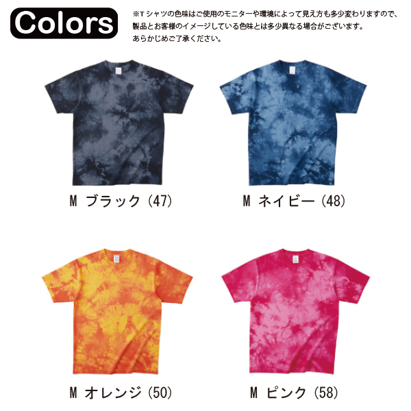※タイダイ染めの製品は特性上、1枚1枚のタイダイ柄に個体差がございます。