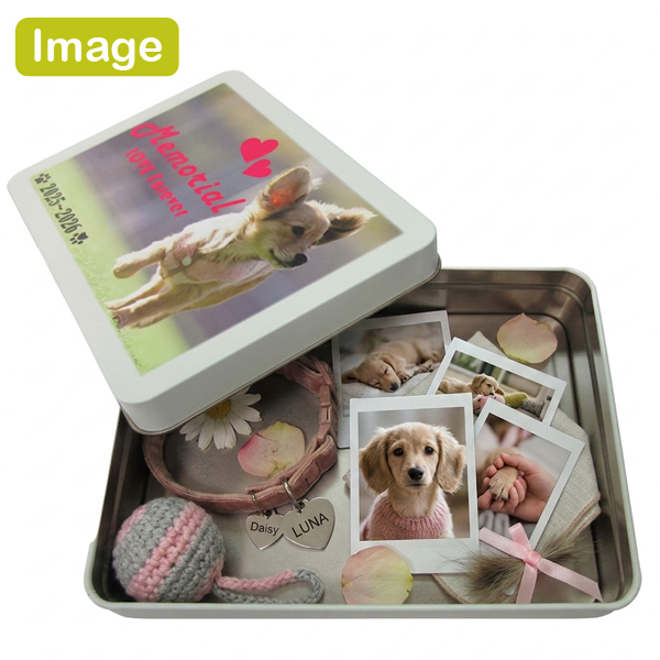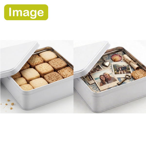 写真やメッセージでプリントされた缶に思い出の品をしまっておきましょう。特別な贈り物のためのギフトボックスとしても。